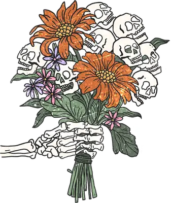 Gothic Skeleton Hand Skull & Floral Bouquet DTF Transfer