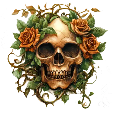 Gothic Skull Orange Roses DTF Transfer | Tattoo Art Style