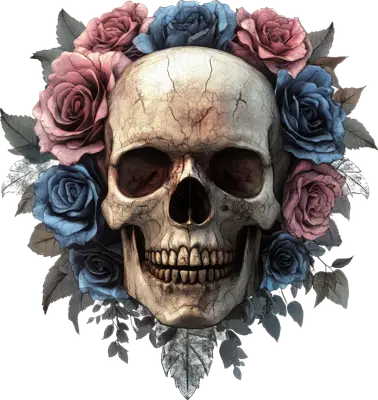 Gothic Skull with Pink & Blue Roses DTF Transfer