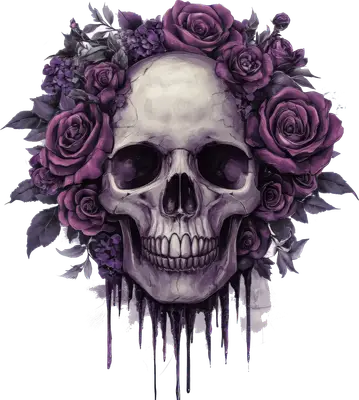 Gothic Skull with Purple Roses DTF Transfer | Dark Floral Art