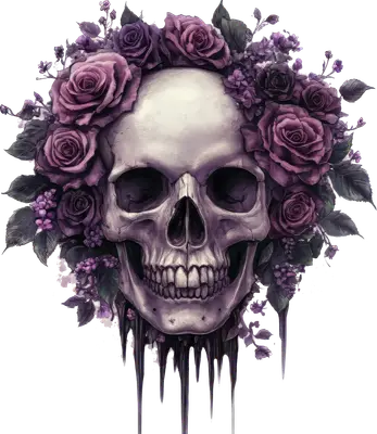 Gothic Skull with Purple Roses DTF Transfer | Dark Floral Heat Press Design