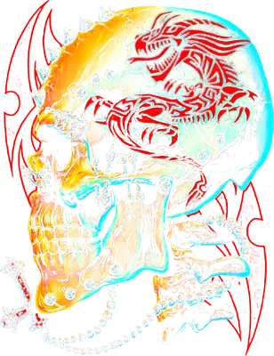 Gothic Spiked Skull DTF Transfer with Tribal Dragon & Cross