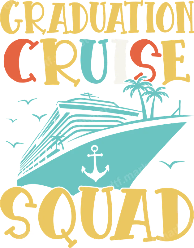 See allSet sail for celebration with our vibrant "Graduation Cruise Squad" DTF transfer! This fun design features bold, retro-inspired lettering alongside a charming cruise ship, swaying palm trees, an anchor, and soaring seagulls. It's the perfect ready to press graphic for commemorating that special post-graduation cruise trip, capturing the excitement of new beginnings and tropical adventures. This design is ideal for graduating seniors, their supportive family, and friends embarking on a celebratory cruise together. It makes a fantastic gift for anyone planning a graduation trip or a memorable souvenir for the entire cruise squad. Create matching shirts for your group to stand out in style on deck, at excursions, or during graduation parties before the big trip. Our versatile DTF transfer can be easily applied to a wide range of fabrics, including cotton, polyester, and their blends. Simply use a heat press at 300-325°F for 15 seconds with medium pressure, or even a household iron for smaller applications. Enjoy the convenience of a professional-grade iron on decal with absolutely no weeding required, making custom apparel creation quick and hassle-free. Crafted with high-quality, professional DTF film, this t-shirt transfer ensures brilliant, lasting colors that resist cracking and fading after multiple washes. The strong adhesive provides a soft, flexible feel on your garments, guaranteeing a durable and comfortable heat transfer that will be cherished for years of cruising memories.