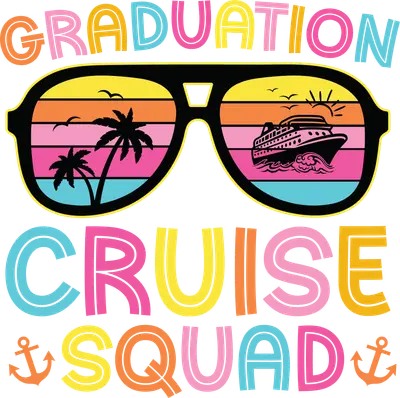 See allGet ready to set sail for celebration with this vibrant "Graduation Cruise Squad" DTF transfer! This fun and festive design features bold, multi-colored typography spelling out "GRADUATION CRUISE SQUAD," perfectly complemented by a pair of retro aviator sunglasses. Within the lenses, a stunning sunset or sunrise beach scene unfolds, complete with swaying palm trees, a majestic cruise ship, and soaring birds, making it a perfect ready to press design for any post-graduation getaway. This exciting iron on transfer is tailor-made for graduating classes, families, and friends planning a celebratory cruise or beach trip. It's ideal for creating matching shirts for your "squad" whether they're high school, college, or even kindergarten graduates! Perfect for graduation parties, cruise excursions, family vacations, or as unique gifts for seniors. Small t-shirt businesses and crafters will love this popular heat transfer design for easy inventory creation and personalized apparel. Applying this heat press transfer is a breeze on a wide range of materials, including cotton, polyester, cotton-poly blends, and even nylon. Achieve professional results using a heat press (recommended settings: 300-325°F for 15 seconds with medium pressure) or a household iron. Forget tedious weeding; simply peel and press! It's perfect for custom t-shirts, hoodies, sweatshirts, tote bags, pillow covers, baby onesies, aprons, and denim jackets. For long-lasting durability, wash garments inside out and tumble dry low. Our premium ready to press transfer ensures a high-quality finished product every time. It boasts vibrant, full-color printing with crisp details and rich saturation that stands out. Enjoy a soft, flexible feel that resists cracking, unlike heavy vinyl alternatives. Each direct to film transfer is printed on durable DTF film with a strong adhesive backing, guaranteeing excellent adhesion and a professional look that will impress your entire Graduation Cruise Squad.