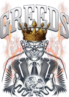 Greeds King of Earth DTF Transfer - Sinister Businessman Crown Globe