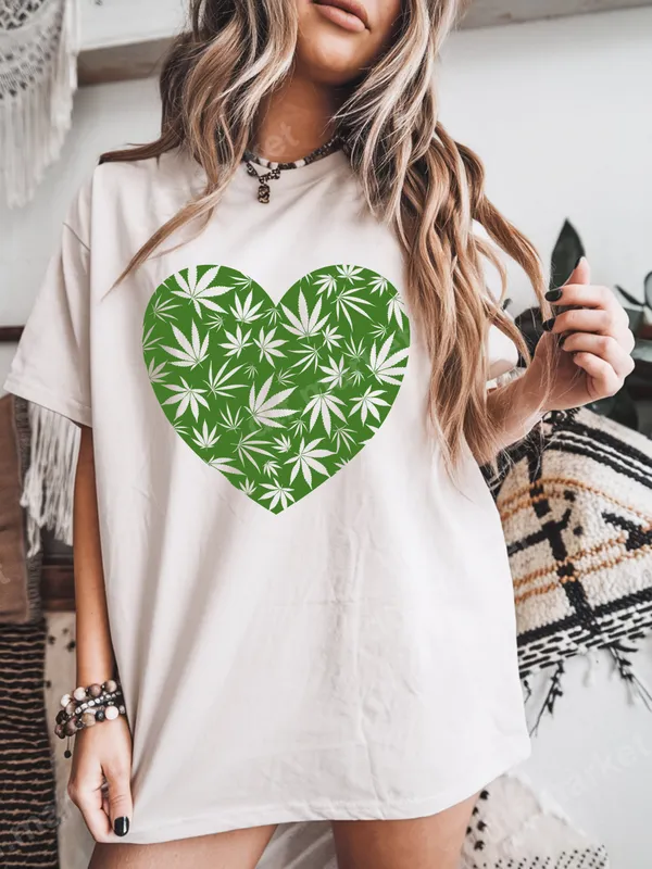 Green Cannabis Leaf Heart DTF Transfer | Weed Lover Apparel Design