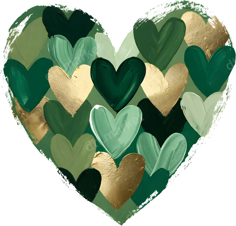 Green Gold Painted Hearts Love DTF Transfer Ready To Press