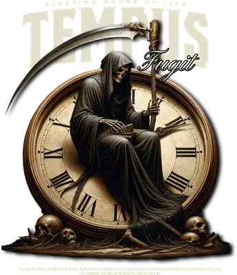 Grim Reaper Tempus Fugit DTF Transfer | Memento Mori Clock Skull