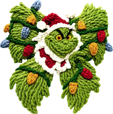 Grinch Christmas Bow DTF Transfer - Knitted Lights & Santa Hat Design