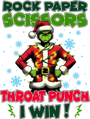 Grinch-like Rock Paper Scissors Throat Punch Christmas DTF Transfer