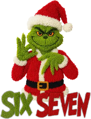 See allThis festive and mischievous Grinch Santa fuzzy DTF transfer captures the iconic character in his classic Santa suit, complete with a jolly red hat and a sly, knowing grin. Rendered with a unique textured, embroidered-like finish, the design gives a tactile illusion that truly pops. Below the Grinch, the words "SIX SEVEN" are displayed in a matching fuzzy green and red font, adding a specific, intriguing touch to this ready to press design. This fun heat transfer design is perfect for anyone who loves a bit of holiday mischief! Ideal for Grinch fans, Christmas enthusiasts, and those looking to add a unique twist to their festive wardrobe, it's a fantastic choice for ugly sweater parties, holiday gatherings, or as a cheeky gift for friends and family. Small apparel businesses, Etsy sellers, and crafters can easily create popular holiday merchandise with this eye-catching iron on transfer. Applying this vibrant heat press transfer is simple and efficient. It adheres beautifully to a wide range of materials including cotton, polyester, cotton-poly blends, and even nylon. For best results, use a heat press at 300-325°F for 15 seconds with medium pressure, or a household iron. Forget tedious weeding; just peel and press! Create custom t-shirts, cozy hoodies, festive sweatshirts, fun tote bags, unique pillow covers, baby onesies, aprons, and denim jackets. For lasting durability, wash garments inside out and tumble dry low. Experience professional quality with this ready to press transfer, boasting vibrant, full-color printing and exceptional fine detail that truly brings the fuzzy texture to life. It's crack-resistant and soft to the touch, ensuring no heavy vinyl feel. Each direct to film transfer is meticulously printed on premium DTF film, featuring a strong adhesive backing for flawless application and results that will impress every time.