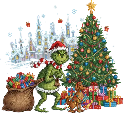 Grinch Stealing Christmas Gifts DTF Transfer with Max & Tree