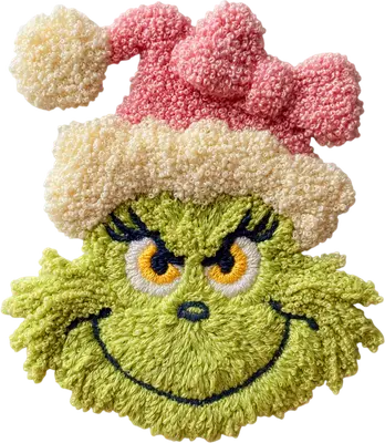 Grinch with Pink Santa Hat Chenille Style DTF Transfer