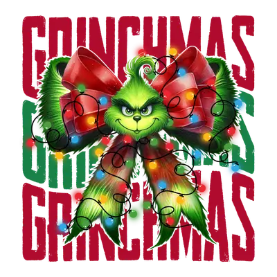 Grinchmas Mischievous Grinch Bow Christmas Lights DTF Transfer