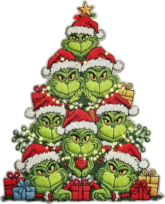 See allThis festive Grinchmas Tree DTF transfer brings a touch of mischievous holiday spirit to your apparel. Featuring a pyramid of iconic green faces wearing Santa hats, adorned with twinkling Christmas lights and festive presents, this unique design is ready to press for instant holiday cheer. The detailed, embroidery-like style captures the Grinch's signature grumpy charm, making it a standout piece for the festive season. Perfect for fans of classic holiday stories, this iron on transfer is ideal for creating custom gifts or personalized festive wear. Whether for family matching outfits, Ugly Christmas Sweater parties, or simply adding a fun twist to your winter wardrobe, this heat transfer design will delight. Small t-shirt businesses, crafters, and individuals looking for unique holiday apparel will find this design easy to incorporate into their creative projects. Applying this heat press transfer is a breeze. It works beautifully on a wide range of fabrics, including cotton, polyester, cotton-poly blends, and even nylon. For best results, use a heat press at 300-325°F for 15 seconds with medium pressure, or apply carefully with a household iron. Forget weeding—simply peel and press! It's perfect for custom t-shirts, hoodies, sweatshirts, tote bags, pillow covers, and even aprons, transforming any item into a holiday statement. Our ready to press transfer offers vibrant, full-color printing with exceptional detail, capturing every nuance of this whimsical Grinchmas tree. The print is crack-resistant and soft to the touch, providing a premium feel without the heavy vinyl texture. Each direct to film transfer is produced on high-quality DTF film with a robust adhesive backing, ensuring professional, long-lasting results that withstand washing and wear.
