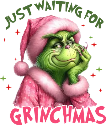 See allThe design features a mischievously smiling, green-furred character, reminiscent of everyone's favorite Christmas curmudgeon, wearing a fluffy pink Santa hat and matching robe. The character rests its chin on its hand with a sly, knowing grin, perfectly embodying the sentiment "JUST WAITING FOR GRINCHMAS." Adorned with festive red and green stars, this vibrant artwork captures a unique holiday mood. This premium DTF transfer is an instant classic, bringing a touch of playful sarcasm to your holiday creations. It arrives completely ready to press, making your crafting seamless. This funny DTF design is perfect for those who appreciate a blend of holiday cheer and a touch of rebellious spirit. Ideal for Christmas parties, family gatherings, or just showing off your unique holiday style, it makes a fantastic gift for friends, family, or fellow Grinch fans. Small t-shirt businesses and crafters looking to add popular, trending holiday designs to their inventory will find this a high-demand item. Use this versatile iron on transfer to create custom apparel that stands out, or as a fun heat transfer design for seasonal promotions. Applying this heat press transfer is incredibly easy, working flawlessly on cotton, polyester, cotton-poly blends, and even nylon. For best results, use a heat press at 300-325°F for 15 seconds with medium pressure, or apply with a household iron. There's no tedious weeding required—simply peel and press for a professional finish. It’s perfect for custom t-shirts, hoodies, sweatshirts, tote bags, pillow covers, baby onesies, aprons, and denim jackets. To ensure lasting durability, wash garments inside out with cold water and tumble dry on low heat. This high-quality ready to press transfer boasts vibrant, full-color printing with exceptional fine detail that truly brings the design to life. The finished product is crack-resistant and soft to the touch, avoiding the heavy, stiff feel often associated with vinyl. Each direct to film transfer is meticulously printed on premium DTF film, engineered with a strong adhesive backing to guarantee professional, long-lasting results every single time.