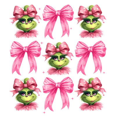 Grinchy Girl Pink Bow DTF Transfer | Ready to Press Christmas Design