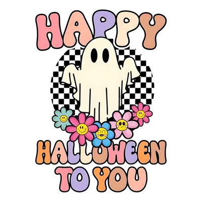 Groovy Happy Halloween Ghost DTF Transfer with Pastel Flowers
