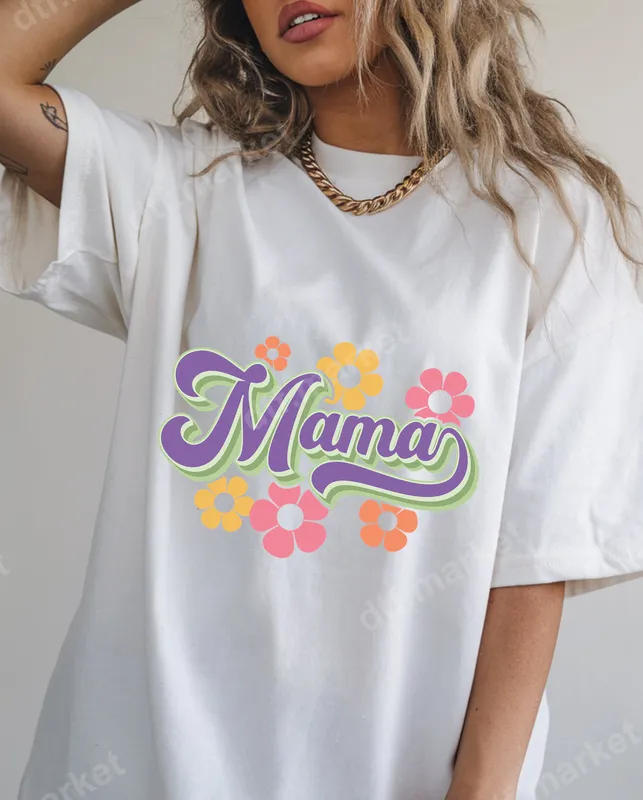 See allEmbrace retro charm with our 'Groovy Mama' DTF transfer, featuring the word 'Mama' in a playful, wavy purple font with a cool green outline. This vibrant design is surrounded by adorable pink, orange, and yellow daisy-like flowers, creating a truly cheerful and nostalgic aesthetic. It's a perfect ready to press transfer to celebrate motherhood in style, bringing a touch of 70s or 90s flair to any garment. Our high-quality direct to film transfer ensures a stunning, detailed graphic that’s sure to stand out. This charming iron on transfer is ideal for all the amazing mothers, grandmothers, and new moms out there. It makes a thoughtful and unique gift for Mother's Day, birthdays, baby showers, or just to show appreciation. Create personalized apparel for family gatherings, mommy-and-me outfits, or simply to add a touch of fun to everyday wear. Its cheerful vibe makes it suitable for spring and summer wardrobes, celebrating the joy of being a mom with a trendy, vintage feel. Applying this heat press design is incredibly simple and efficient. Our transfers adhere beautifully to a wide range of fabrics, including cotton, polyester, and various blends. For best results, use a heat press at 300-325°F for 15 seconds with medium pressure, then cold peel the film. While a heat press is recommended for professional results, this versatile iron on decal can also be applied with a household iron. Best of all, there's absolutely no weeding required, saving you time and effort. Experience superior quality with our professional-grade DTF transfers. Each transfer boasts incredibly vibrant colors and sharp details that resist cracking and peeling, ensuring your custom creation lasts wash after wash. The printed design remains soft to the touch, providing comfort without stiffness. Crafted with strong adhesive, this apparel transfer ensures a long-lasting bond to your chosen garment, making it feel like part of the fabric itself. Elevate your apparel with a durable, high-quality heat transfer.