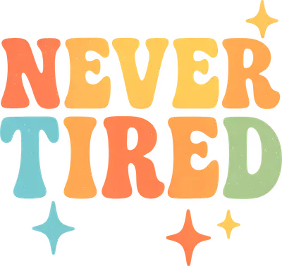 Groovy "Never Tired" Retro DTF Transfer | 70s Vibe Typography Heat Transfer