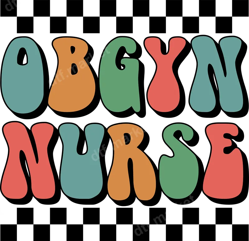 Groovy OBGYN Nurse DTF Transfer | Retro Checkerboard Medical Apparel