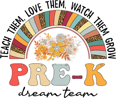 See allThis vibrant DTF transfer features a heartwarming 'Teach Them. Love Them. Watch Them Grow' message arcing over a stylish, retro-inspired rainbow. Below, the phrase 'PRE-K dream team' stands out in groovy, bubbly lettering with a playful script finish. The design incorporates leopard print accents within the rainbow and a beautiful cluster of vintage-style flowers, creating a bohemian yet professional look. This ready to press design brings a positive and energetic vibe perfect for any dedicated educator. This eye-catching iron on transfer is perfect for Pre-K teachers, teaching assistants, or anyone part of a Pre-K 'dream team.' It makes an ideal gift for teacher appreciation week, back-to-school events, or end-of-year celebrations. Small t-shirt businesses and crafters will find this heat transfer design a fantastic addition to their apparel line, allowing them to create unique custom teacher shirts that express pride and passion for early childhood education. Applying this heat press transfer is simple and efficient. It works beautifully on a wide range of materials including cotton, polyester, cotton-poly blends, and even nylon, ensuring versatility for all your projects. Use a heat press at 300-325°F for 15 seconds with medium pressure, or apply with a household iron for equally great results. There's no tedious weeding required—simply peel and press! Create stunning custom t-shirts, hoodies, sweatshirts, tote bags, pillow covers, and even baby onesies. For long-lasting durability, wash your finished garment inside out and tumble dry on low heat. Our direct to film transfers boast vibrant, full-color printing with exceptional fine detail that truly pops. Each ready to press transfer is crafted to be crack-resistant and incredibly soft to the touch, avoiding the heavy, stiff feel often associated with vinyl. Printed on premium DTF film with a strong adhesive backing, these transfers guarantee professional-grade results every time, making your apparel look retail-ready and stylish.