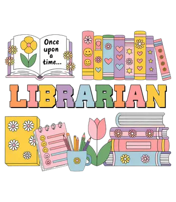 Groovy Retro Librarian DTF Transfer | Books Flowers Smiley Faces