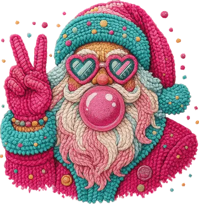 See allEmbrace the festive season with a fun, unconventional twist using our Groovy Santa Peace Sign DTF transfer. This eye-catching design features a cheerful Santa in a vibrant knitted texture, sporting cool heart-shaped sunglasses and blowing a bubblegum bubble. With a relaxed peace sign gesture, this ready to press transfer brings a unique, retro vibe to your holiday apparel and accessories, moving beyond traditional Christmas imagery with its playful spirit and bright pink and teal color palette. This unique heat transfer design is perfect for anyone looking to add a touch of personality and fun to their holiday wardrobe. Ideal for indie crafters, small t-shirt businesses, and individuals creating custom gifts, it's perfect for Christmas parties, holiday markets, or simply spreading cheer. Great for gifts for friends, family, or even Secret Santa exchanges, this iron on transfer caters to those who love humor, unique art, and a slightly rebellious take on holiday traditions. Applying this vibrant heat press transfer is incredibly easy, making it suitable for both experienced crafters and beginners. It adheres beautifully to a wide range of materials including cotton, polyester, cotton-poly blends, and even nylon. Achieve professional results with a heat press (300-325°F for 15 seconds, medium pressure) or a household iron. There's no tedious weeding required – just peel and press! Perfect for custom t-shirts, hoodies, sweatshirts, tote bags, and even festive pillow covers or aprons. For lasting durability, wash garments inside out and tumble dry low. Experience premium quality with every ready to press transfer from dtf.market. This direct to film transfer boasts vibrant, full-color printing with exceptional detail, capturing the intricate knitted texture and bold hues perfectly. The result is a crack-resistant, soft-to-the-touch finish that feels like part of the fabric, not a heavy vinyl decal. Each DTF transfer is meticulously printed on high-grade DTF film with a robust adhesive backing, ensuring a seamless application and professional-grade results that will last through many holiday seasons.