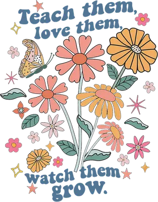 Groovy Teacher DTF Transfer: "Teach Them, Love Them, Watch Them Grow" Floral Butterfly Design