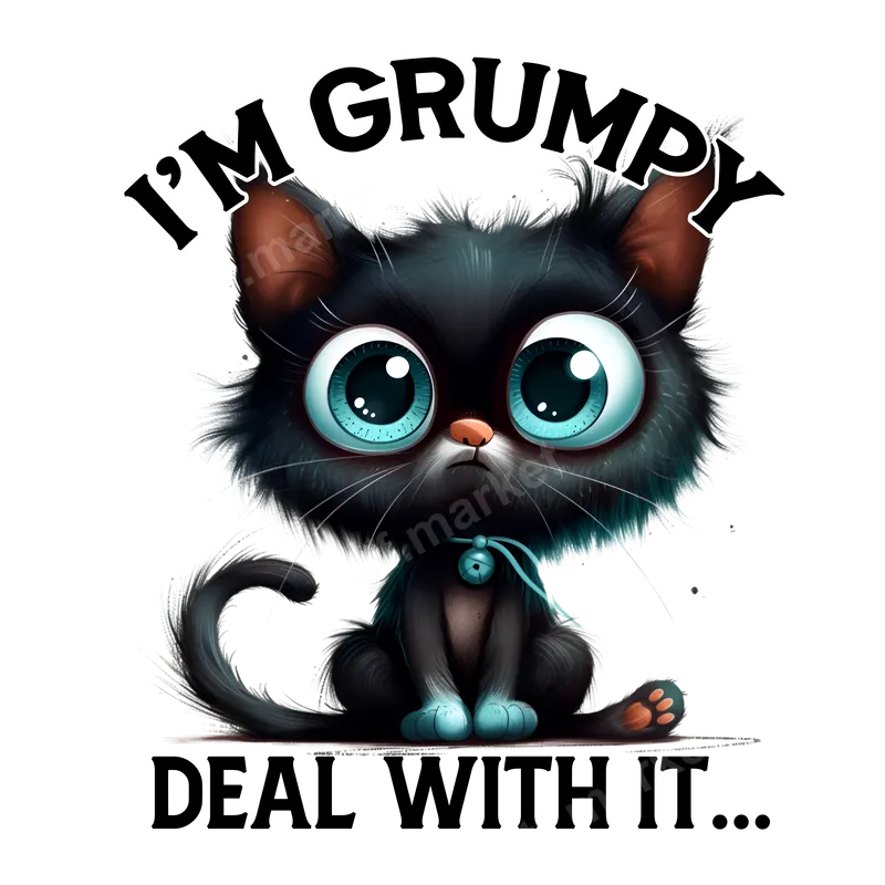 Grumpy Black Cat DTF Transfer | 'I'm Grumpy Deal With It' Heat Press Design