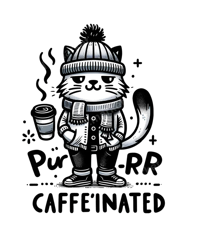 Grumpy Caffeinated Cat DTF Transfer | Purr-RR Coffee Lover Winter Apparel Design