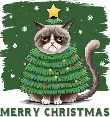 Grumpy Cat Christmas Tree DTF Transfer | Funny Holiday Shirt Design