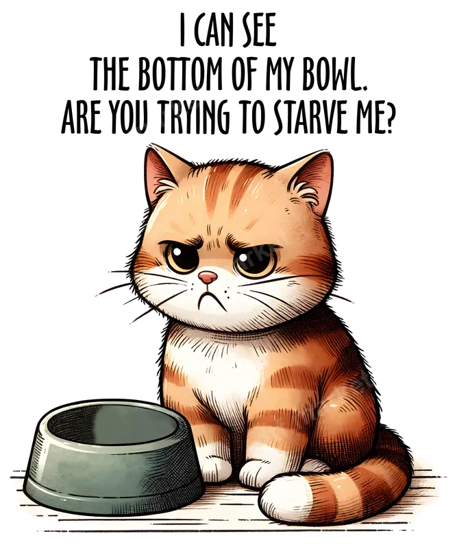 See allBring some purr-fectly relatable pet humor to your wardrobe with this hilarious DTF transfer featuring a grumpy orange tabby cat. The design showcases the disgruntled feline sitting next to a conspicuously empty food bowl, with the iconic text "I CAN SEE THE BOTTOM OF MY BOWL. ARE YOU TRYING TO STARVE ME?" This ready to press design captures the essence of every demanding cat and makes for a fantastic conversation starter. This amusing heat press transfer is ideal for devoted cat parents, animal humor enthusiasts, and anyone who appreciates a good sarcastic jab from their furry friends. It’s a fantastic iron on transfer for personalizing gifts for cat moms, cat dads, or just to treat yourself. Add this unique shirt design to your collection and let your apparel do the talking about your love-hate relationship with your feline overlords. Applying this easy heat press transfer is a breeze! Compatible with cotton, polyester, and most fabric blends, simply use your heat press at 300-325°F for 15 seconds with medium pressure. For best results, allow it to cool completely before peeling the film (cold peel). Unlike traditional vinyl, there's no weeding required, making the application process quick and mess-free, creating professional heat press ready apparel in minutes. Our high-quality direct to film transfer ensures vibrant colors, crisp details, and superior durability. The print is crack-resistant, feels soft to the touch, and holds up beautifully wash after wash. Crafted with professional-grade DTF film and strong adhesive, this makes an ideal t-shirt transfer for long-lasting enjoyment and a fantastic way to express your pet-loving personality.