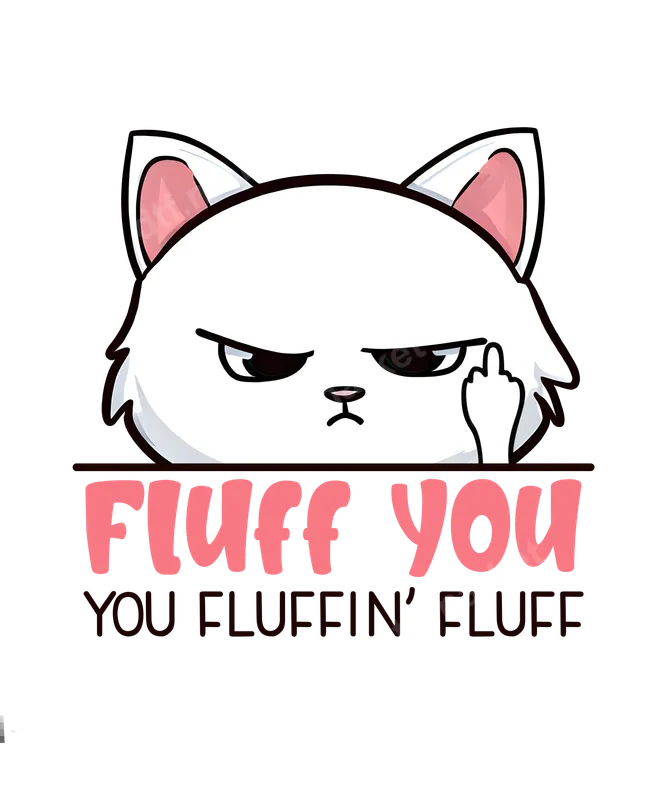 See allUnleash your inner sass with this hilarious "Fluff You" grumpy cat DTF transfer! Featuring an adorable yet defiant white cat giving a subtle middle finger gesture, this design expresses your mood without saying a word. The bold pink "Fluff YOU" text above "YOU FLUFFIN' FLUFF" adds a playful, sarcastic touch. This high-quality, ready to press transfer is perfect for injecting humor and attitude into any garment. This sarcastic feline heat transfer is ideal for cat lovers, pet owners with a mischievous streak, or anyone who appreciates witty, adult-themed humor. It makes a fantastic gift for friends or family on birthdays, holidays, or just because. Perfect for casual wear, social gatherings, or adding rebellious charm to your everyday wardrobe. Show off your purr-fectly grumpy attitude with this unique iron on design. Our premium DTF transfers are incredibly versatile, applying flawlessly to cotton, polyester, and blends. For optimal results, use a heat press at 300-325°F for 15 seconds with medium pressure, then cold peel. While a heat press is recommended, good results can also be achieved with a household iron. Enjoy a seamless application with no weeding or masking required – just press and go! Experience superior quality with every apparel transfer from dtf.market. Our "Fluff You" design boasts vibrant colors, exceptional detail, and a soft feel that won't crack or peel after multiple washes. Crafted using professional-grade DTF film and strong adhesive, this t-shirt transfer is built to last, ensuring your custom creation maintains its integrity and eye-catching appeal.