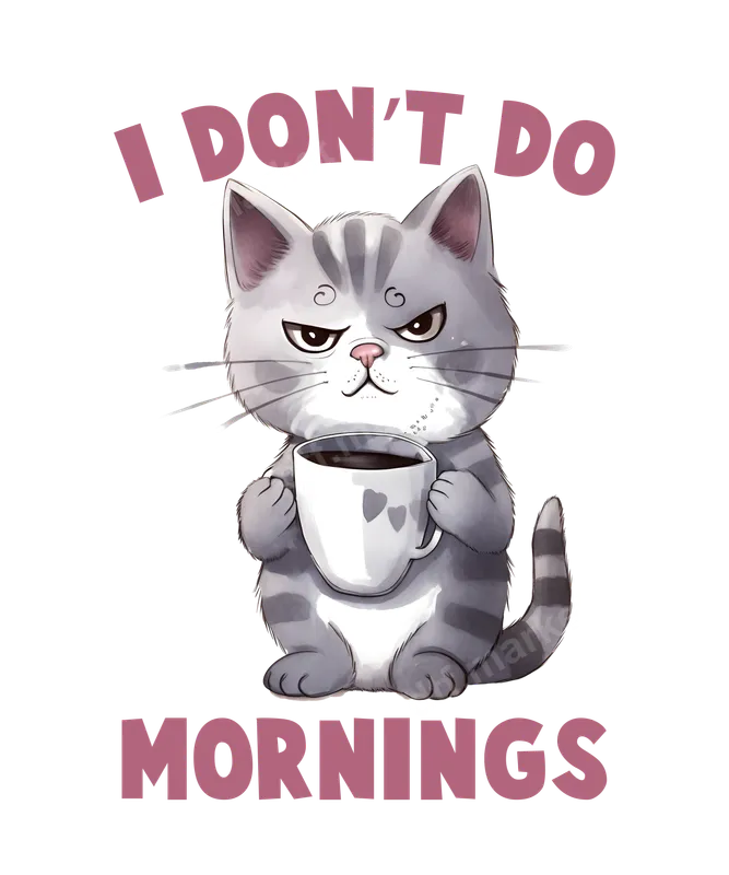Grumpy Cat "I Don't Do Mornings" DTF Transfer | Coffee Lover T-Shirt Design