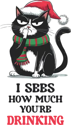 See allDive into the charm of this "I Sees How Much You're Drinking" DTF transfer, starring an adorably grumpy black and white cat. Donning a festive red Santa hat and a vibrant green and red striped scarf, this feline friend gives a knowing, slightly judgmental look, perfect for adding a touch of humor to your holiday creations. It's a ready to press design that captures the spirit of festive overindulgence with a lovable, sassy attitude, making it an instant conversation starter. This hilarious design is perfect for anyone with a dry wit, cat lovers, or those who enjoy a good laugh during the holiday season. It makes an excellent iron on transfer for crafting unique gifts for friends, family, or even yourself, especially for Christmas parties, Secret Santa exchanges, White Elephant gifts, or New Year's Eve celebrations. Small t-shirt businesses and crafters looking for popular heat transfer designs will find this an irresistible addition to their festive inventory, sure to bring smiles. Applying this heat press transfer is a breeze on a variety of materials including cotton, polyester, cotton-poly blends, and even nylon. Achieve professional results using a heat press at 300-325°F for 15 seconds with medium pressure, or apply easily with a household iron. No weeding or complicated steps required – just peel and press! Create custom t-shirts, cozy hoodies, festive sweatshirts, fun tote bags, or even unique holiday aprons. For best care, wash inside out and tumble dry low to ensure lasting vibrancy and design integrity. Experience superior quality with this ready to press transfer, featuring vibrant, full-color printing and exceptional fine detail that truly brings the grumpy cat to life. This crack-resistant apparel transfer offers a soft hand feel, far superior to traditional vinyl, with no heavy, stiff texture. Each direct to film transfer is produced on premium DTF film with a robust adhesive backing, guaranteeing a professional, durable finish for every project you undertake.
