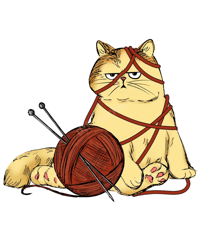 Grumpy Cat Tangled Yarn DTF Transfer | Knitting Humor Design