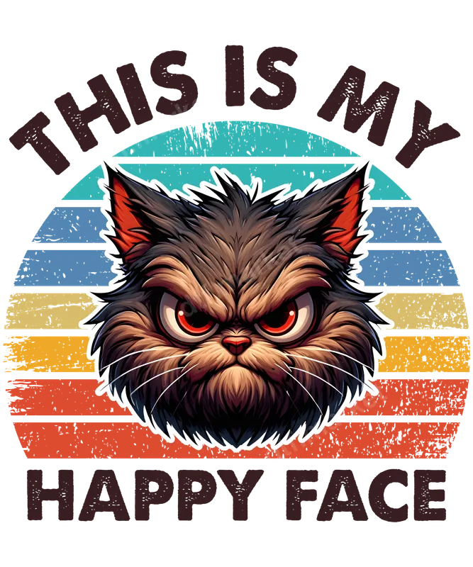 Grumpy Cat "This Is My Happy Face" DTF Transfer | Retro Sunset Humor