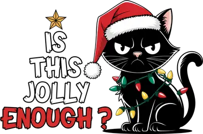 See allUnleash your holiday spirit (or lack thereof) with this hilarious "Is This Jolly Enough?" DTF transfer featuring a perpetually grumpy black cat. Adorned with a classic Santa hat and tangled in colorful Christmas lights, this feline friend perfectly embodies the sarcastic holiday mood. This vibrant, ready to press design is ideal for adding a touch of humor to any festive occasion, ensuring a chuckle wherever it goes. It’s a purr-fect statement piece for those who appreciate the lighter, more cynical side of the season. This sarcastic cat heat transfer design is perfect for cat lovers, humor enthusiasts, and anyone who prefers a dash of cynicism with their holiday cheer. Create unique apparel for ugly Christmas sweater parties, secret Santa gifts, or just a cozy night in. Small businesses and Etsy sellers can easily add this popular iron on transfer to their holiday product lines, offering customers a fun and distinctive way to celebrate. It makes an excellent gift for friends, family, or even yourself, especially during the festive chaos. Applying this heat press transfer is a breeze – simply press it onto cotton, polyester, cotton-poly blends, or nylon with a heat press (300-325°F for 15 seconds, medium pressure) or a household iron. Forget tedious weeding; this iron on decal is ready to go straight from the film to your garment. Transform custom t-shirts, sweatshirts, hoodies, tote bags, pillow covers, and aprons in minutes. For best results and lasting durability, wash garments inside out and tumble dry on low heat. Experience professional quality with every ready to press transfer. Our direct to film transfer technology ensures vibrant, full-color printing with crisp details that won't crack or peel. The soft, lightweight feel of the design means no heavy vinyl bulk, providing ultimate comfort. Each apparel transfer is printed on premium DTF film with a strong adhesive backing, guaranteeing excellent adhesion and a professional finish that stands the test of time, wash after wash.
