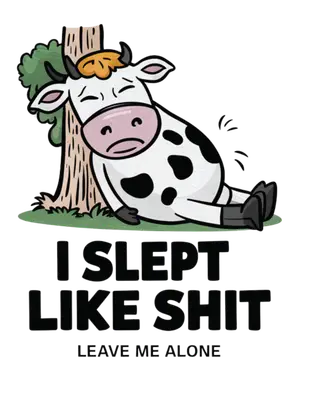 Grumpy Cow 'I Slept Like Shit' DTF Transfer - Funny Adult Humor