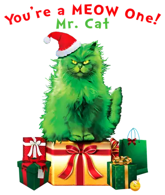 Grumpy Green Cat "MEOW One" Christmas DTF Transfer | Ready to Press