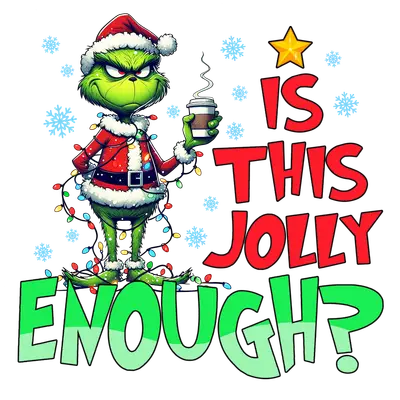 Grumpy Grinch Coffee "Jolly Enough" DTF Transfer | Funny Christmas Iron On
