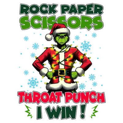 Grumpy Grinch Rock Paper Scissors Throat Punch Funny Christmas DTF Transfer