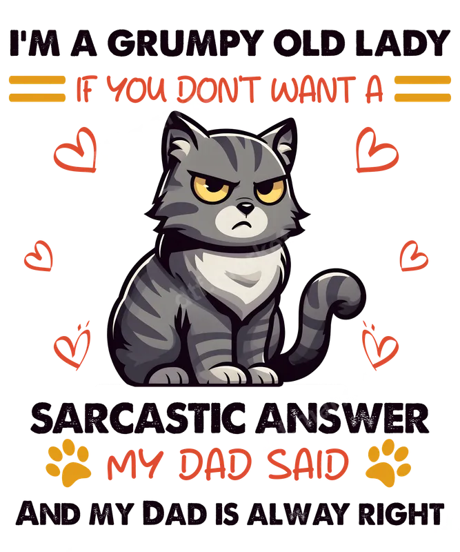 Grumpy Old Lady Sarcastic Cat DTF Transfer | Dad's Always Right Quote