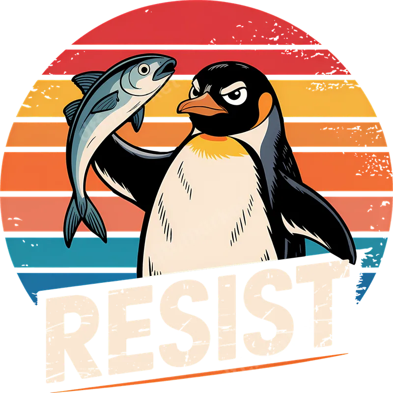 Grumpy Penguin Resist DTF Transfer - Retro Sunset Fish Design