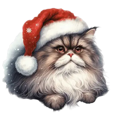 Grumpy Persian Cat in Santa Hat DTF Transfer - Christmas Holiday Ready to Press