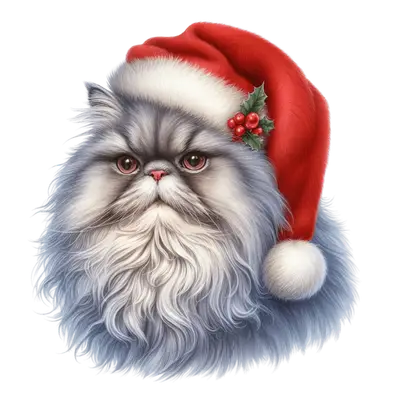 Grumpy Persian Cat Santa Hat DTF Transfer | Christmas Cat Ready to Press Design