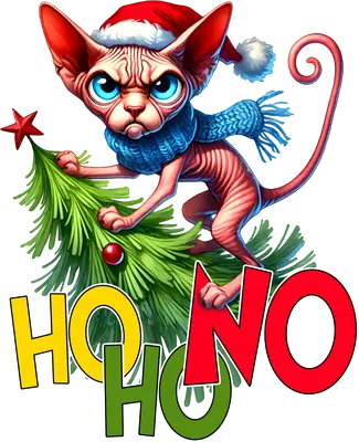 Grumpy Sphynx Cat Christmas HO NO HO HO DTF Transfer | Funny Pet Shirt Design