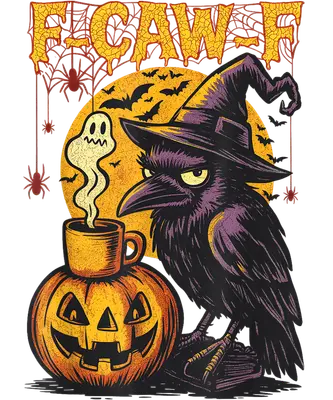 Grumpy Witch Crow F-CAW-F Coffee Halloween DTF Transfer