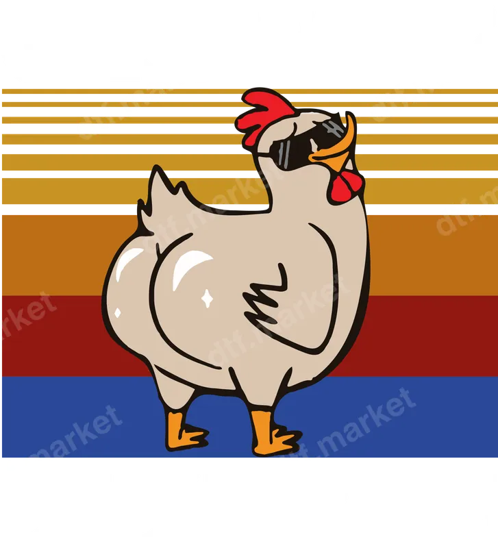 See allInject some humor into your wardrobe with this hilarious "Guess What? Chicken Butt!" DTF transfer. Featuring a cool chicken sporting stylish sunglasses and confidently showcasing its prominent rear, this design is sure to get laughs. The retro-inspired striped background adds a vintage flair, making this a truly unique and eye-catching graphic. This premium direct to film transfer is ready to press, making garment customization incredibly simple and fun. Perfect for anyone with a sense of humor, this design appeals to chicken lovers, backyard farm enthusiasts, and anyone who appreciates a good pun. It makes an excellent gag gift for birthdays, White Elephant parties, or just to surprise a friend. Use this eye-catching iron on transfer to personalize gifts for farmers, pet owners, or anyone who enjoys a cheeky joke. It's a great way to express your personality and bring a smile to faces wherever you go. Applying this heat press transfer is a breeze! Simply use a heat press set between 300-325°F for 15 seconds, peel cold, and you're done. There's no tedious weeding required, saving you time and effort. Our advanced DTF technology ensures this design works flawlessly on a wide range of fabrics including cotton, polyester, and cotton/poly blends. Transform t-shirts, hoodies, tote bags, aprons, and more into wearable works of art. Experience vibrant colors and exceptional durability with our high-quality DTF transfers. Each heat press ready design is crafted to resist cracking, peeling, and fading, ensuring your garment looks fantastic wash after wash. The soft-touch finish integrates seamlessly with the fabric, providing a comfortable feel without a heavy vinyl texture. Choose dtf.market for superior apparel transfer solutions that stand the test of time.